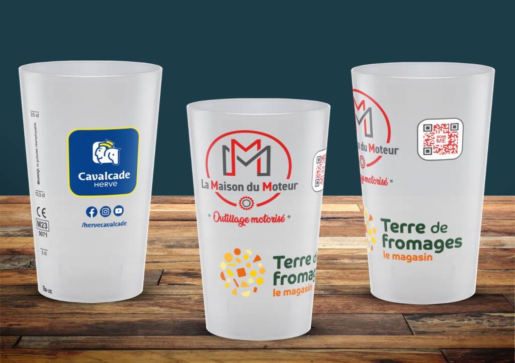 Les gobelets sont proposés à la location au tarif de 0,10€ HTVA/pièce.