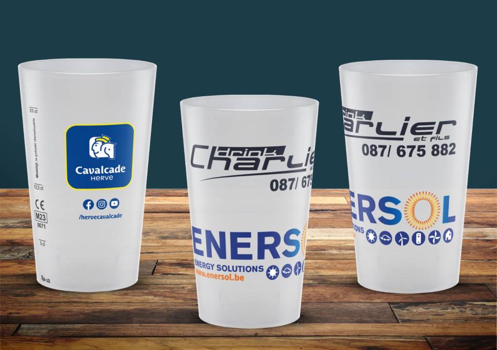 Chaque gobelet perdu ou cassé sera facturé 0.60€ HTVA